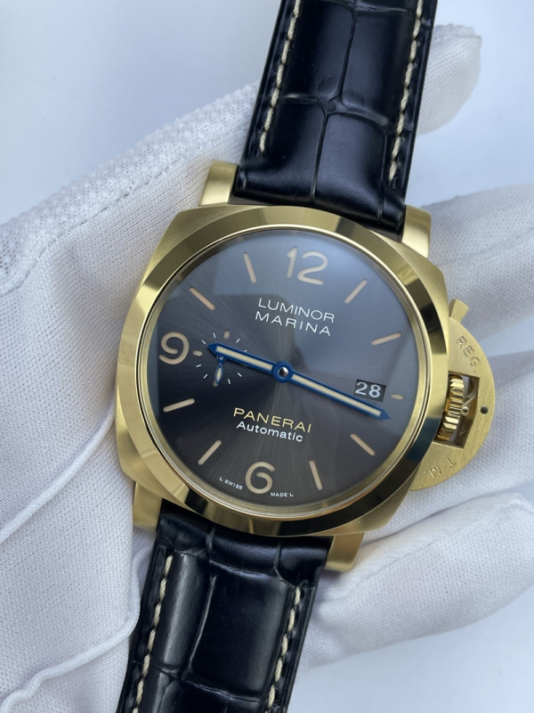 (준비완료/특급배송)NO.3245/VS공장 파네라이 PAM1115 옐로우골드금통 그레이다이얼 블루핸즈 가죽스트랩
